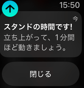 又、1時間座ったままでいると通知がきますが、足につけて座っている場合も下記のようにきちんと通知がきました。