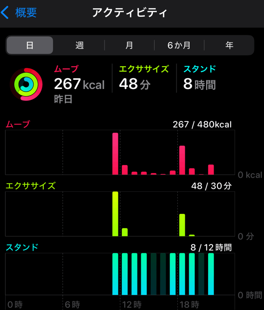 又、もちろん歩数も計測されますし、消費カロリーにも反映され、スタンド時間としても計測されます。